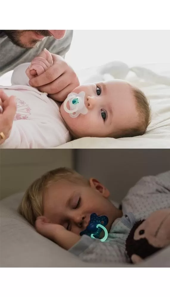 Tma vám už nikdy cumlík neukryje a vy nebudete musieť márne hľadať – cumlík radu Den&Noc má krúžok svietiaci v tme.
