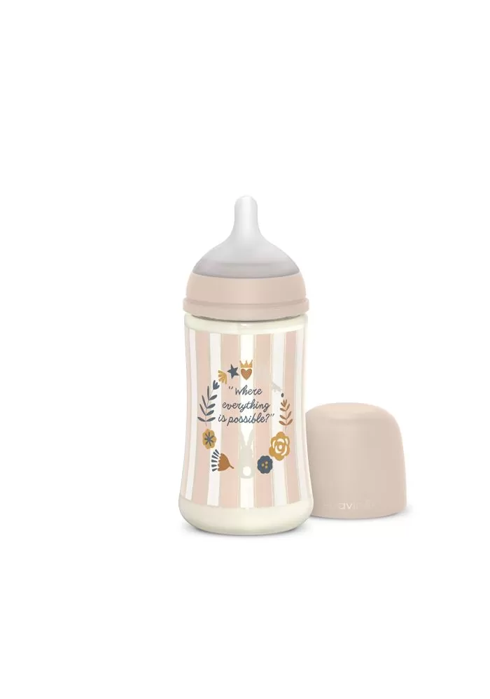 Napodobňuje textúru a konzistenciu matkinej bradavky a dosahuje:
