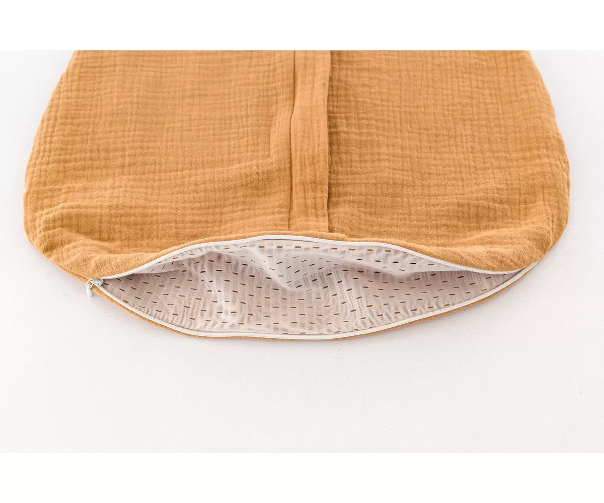 Najdôležitejšie je, že látka je priedušná. Voľná a ľahká väzba mušelínu umožňuje cirkuláciu vzduchu a znižuje riziko prehriatia. Táto funkcia zaisťuje, že sa vaše dieťa cíti pohodlne. Mušelín je tiež odolný. Výrobok vyrobený z prírodného vlákna mušelínu je extra odolný a vydrží viacnásobné pranie – obrovská výhoda pre rodičov. S každým praním je dokonca mäkší.