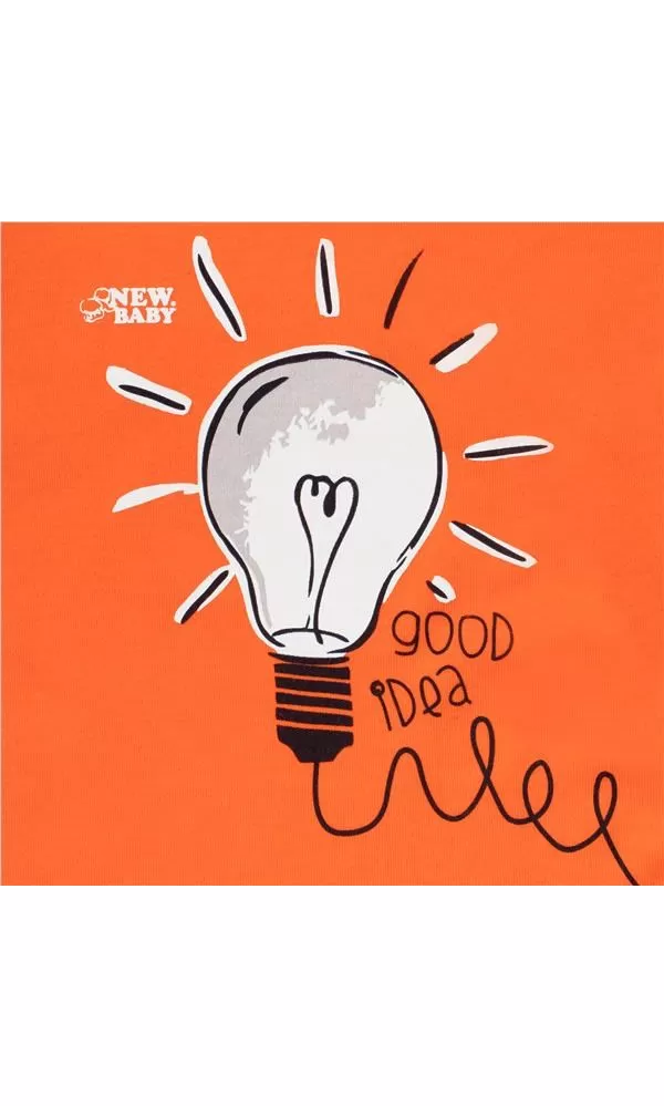 Bavlnené dojčenské tričko českej značky New Baby Happy Bulbs. Tričko s dlhým rukávom a farebným lemom okolo krčku, rukávov av páse je celopotlačené vtipnými a šťastnými žiarovkami s nápisom good idea. Zapínanie na ramienku na cvoček uľahčí obliekanie. Tričko je vyrobené s ohľadom na potreby malých detí s veľmi príjemného materiálu. Zloženie: 100% bavlna.
