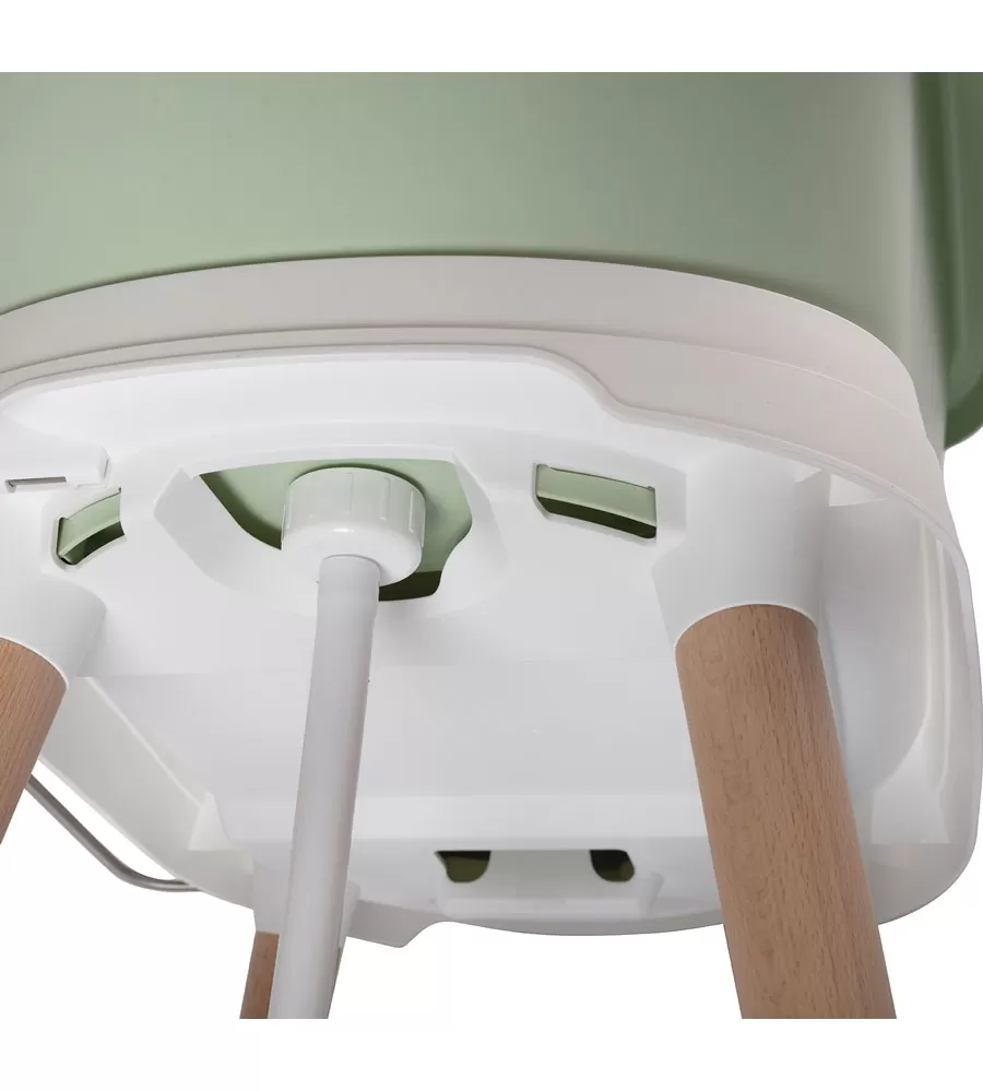 Veľmi stabilný vaňový stojan Sense má nohy vyrobené z lakovaného bukového dreva s certifikáciou FSC. To dodáva stojanu teplý moderný vzhľad. Je vybavený praktickými pomôckami; vpredu je pripevnený držiak na uteráky. Priestranná plastová polička poskytuje dostatok miesta napríklad na šampón, žinku, vodné hračky alebo kúpací gél. To znamená, že máte po ruke všetky potrebné veci, aby ste si s malým mohli v pokoji kúpanie užiť. Inovatívny systém upevnenia zaisťuje, že vaňu možno ľahko pripevniť k stojanu a rovnako ľahko sňať. Po kliknutí môžete svoje bábätko nerušene a bezpečne kúpať.