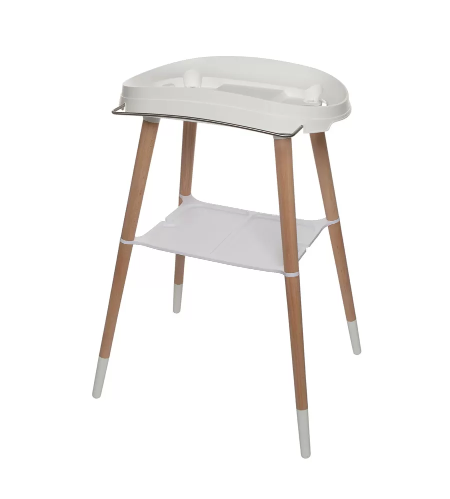 Kúpanie bábätka býva každý večer obľúbenou kratochvíľou, na ktorú sa teší celá rodina. S vaničkou na stojane sa môže odohrávať priamo v detskej izbe a bábätko nemusí byť nikam prenášané. z izbičky. Dizajnový stojan na vaničku Bébé-Jou Sense tento dojem vylepší, príjemnou kombináciou plastu a štíhlych bukových nôh.