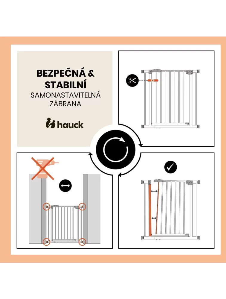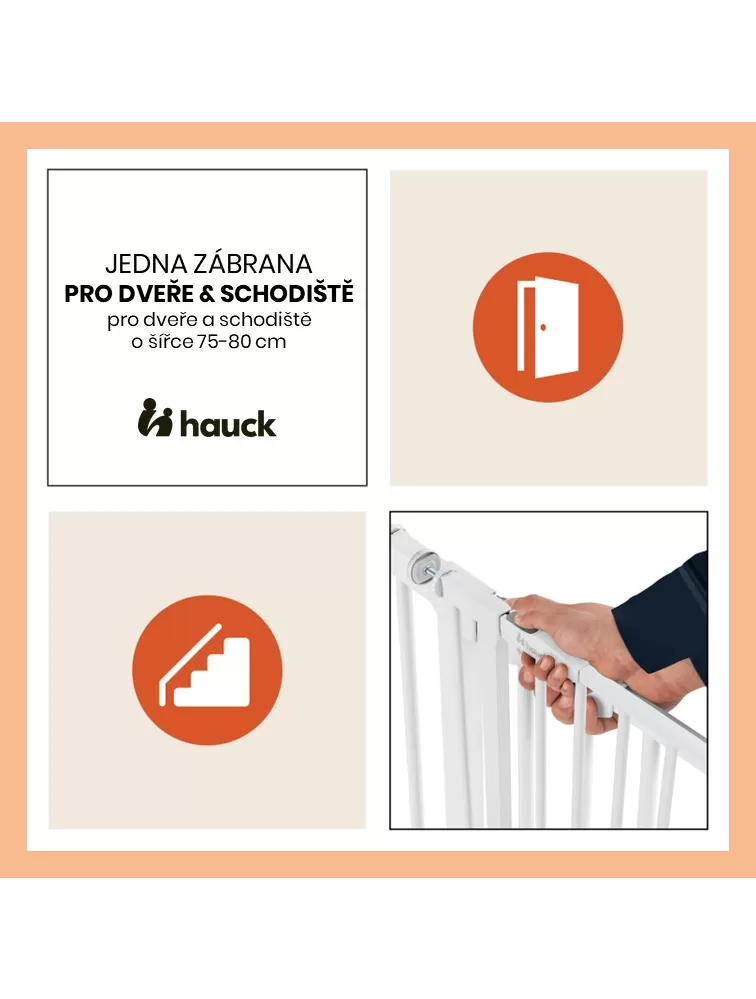 Či už doma, u starých rodičov alebo na dovolenke, zábranu jednoducho upevníte do rámu dverí, k zábradliu alebo len proti stene pomocou nastaviteľných skrutiek. Vďaka nim bránku jednoducho upevníte a opäť odstránite bez toho, aby po sebe zanechala stopy. Zábranu je možné jednoducho otvoriť jednou rukou na obe strany a opäť ľahko zavrieť.