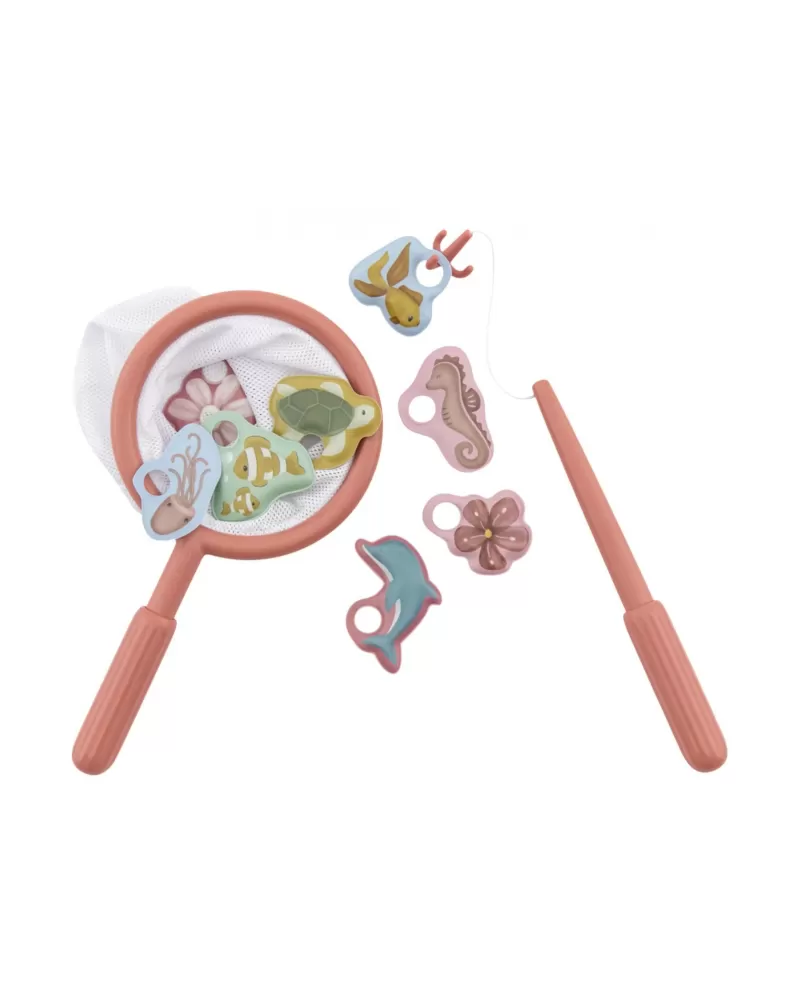 Premeňte plávanie na dobrodružstvo s malým holandským rybárskym súpravou! Táto hravá súprava prináša deťom veľa zábavy a zároveň pomáha rozvíjať svoje jemné motorické zručnosti.  Obsahuje rybársku tyč, sieť a osem plávajúcich postáv morských zvierat a rastlín, ktoré môžu deti počas kúpania loviť z vody.