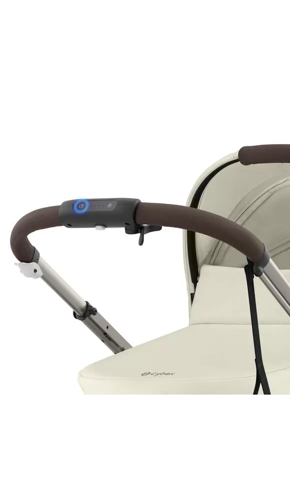 Ovládejte rychlost svého kočárku e-Gazelle S pomocí praktické páčky integrované do řídítek. Pomocí intuitivního uživatelského rozhraní můžete nastavit intenzitu houpání, zkontrolovat výdrž baterie a podle potřeby zapnout nebo vypnout elektro pohon.