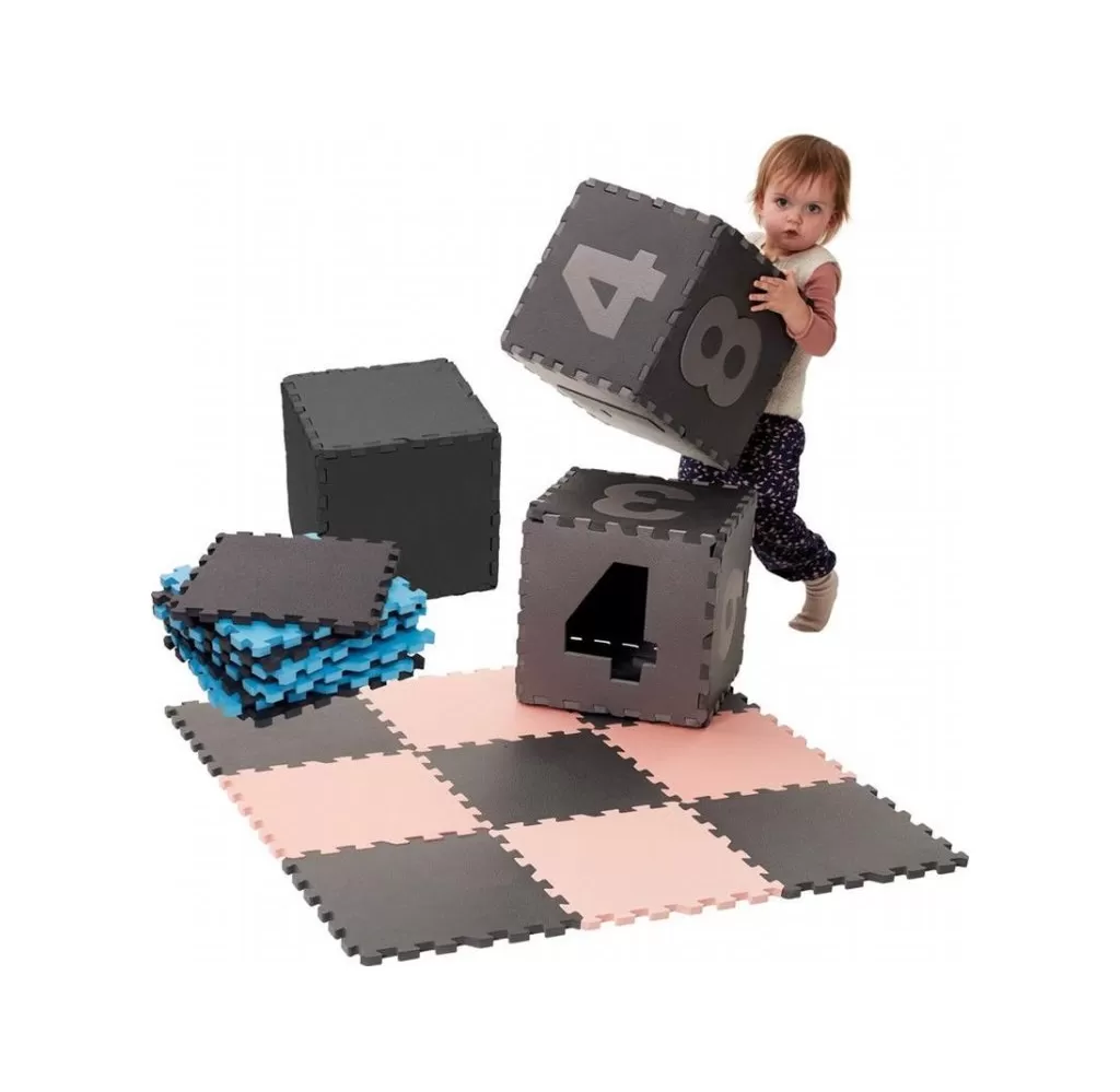 Extra vysoká penová puzzle hracia podlaha od Baby Danu v príjemnej šedej a modrej farbe, ktorá sa hodí do väčšiny interiérov. Balenie obsahuje celkom 9 kusov dlaždíc, každá 30 x 30 cm. Je vyrobená z extra hustej peny zvýšenej hrúbky 1,4 cm, takže sa na nej deti môžu hrať a pokiaľ na ňu spadnú, nič sa im nestane. Podložka tiež izoluje a chráni plaziace sa alebo batoliace sa dieťa pred chladom, hlukom a nárazom. Veľmi vhodné cez dlažbu alebo plávajúcu podlahu.