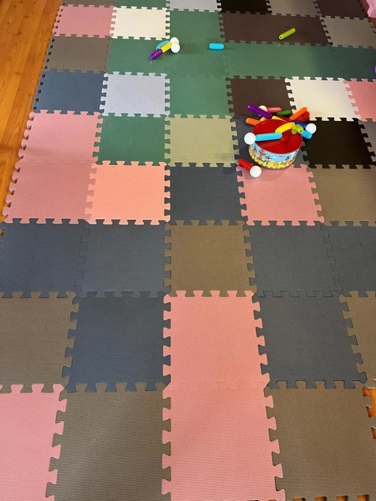 Podložka môže byť alternatívne zostavená aj do štvorcovej krabice. Pokiaľ máte viac podložiek, môžete vytvoriť ďalšie krabice, ktoré dieťaťu môžu skladať. Veľa možností pre aktívnu hru.