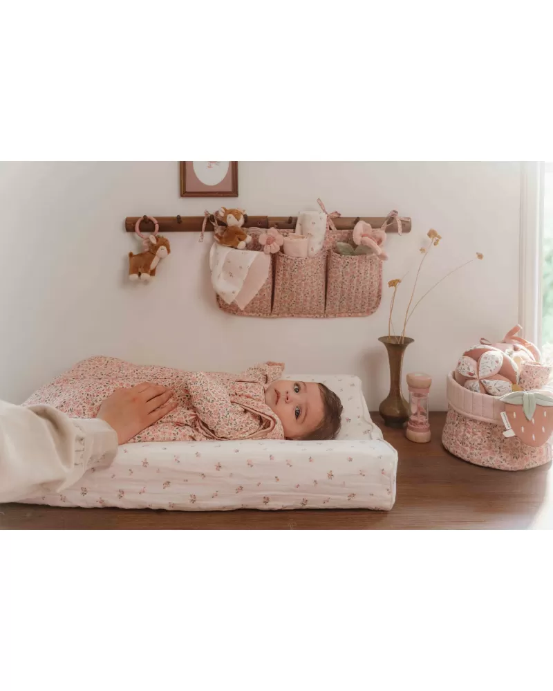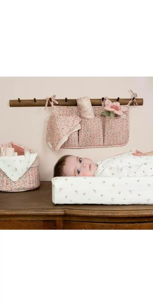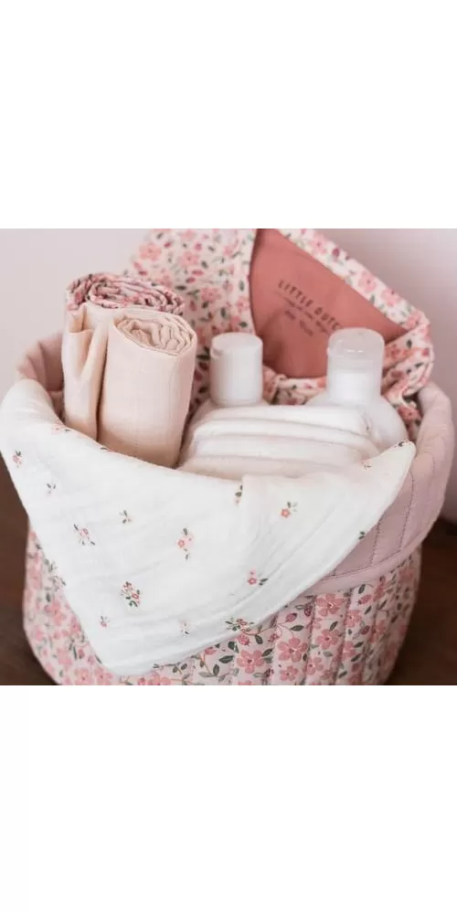 Košík s krásnou kvetinovou potlačou je vyrobený z pevného bavlneného materiálu. Využijete ho pre prehľadné uloženie všetkého, čo potrebujete mať po ruke pri každodennej starostlivosti o vaše bábätko. Košík bude zároveň krásnym doplnkom na prebaľovacom pulte či poličke v detskej izbe. Obojstranné prevedenie umožňuje voľbu vzhľadu košíka podľa vašich preferencií.