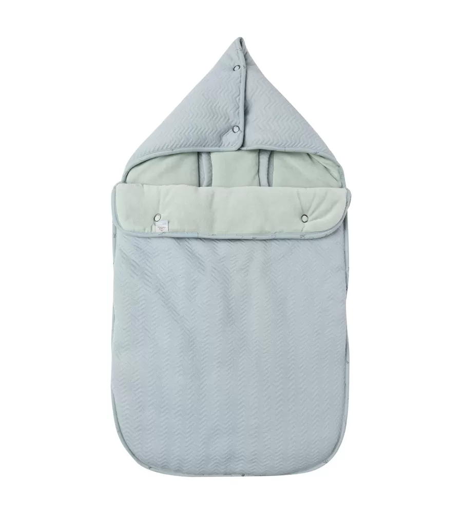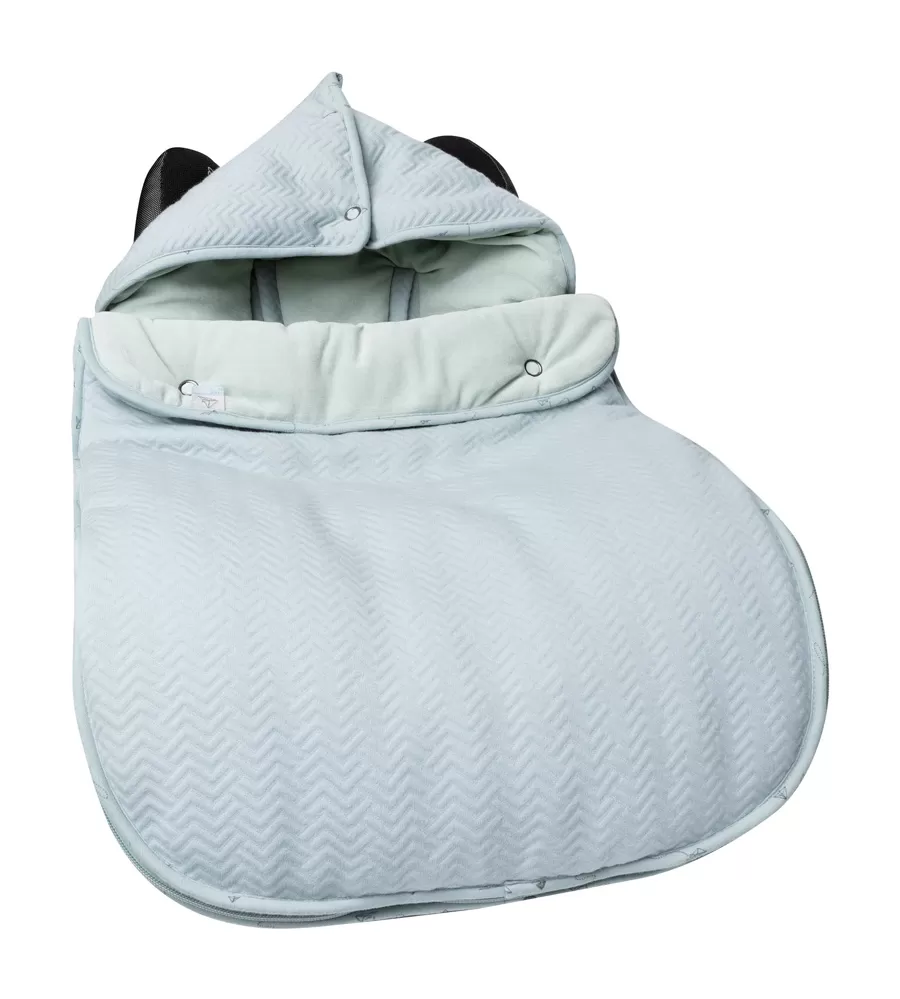 Univerzálny fusáčik z nádherne mäkkého elastického zamatu do autosedačky aj kočíka pre deti do cca 1 roka. Vhodné pre 3/5 bodový systém pásov. Hlavička dieťatka leží na mäkkom zamatovom vankúšiku; tento vankúšik je možné zapnúť a vytvoriť z neho kapucňu. Tak sa môže teplo optimálne rozšíriť po celom priestore spacieho vaku. Jednoduché používanie vďaka obojstrannému zipsu. Dĺžka 90cm.