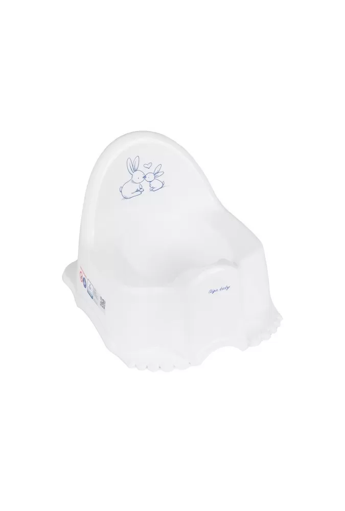 Detský nočník Bunny s obrázkom zajačikov av krásnych pastelových farbách. Je ľahký, kompaktný a vďaka svojmu tvaru, vysokej opierke chrbta a širokému sedátku poskytuje deťom pohodlie. Krásny obrázok dieťa zaujme. Rozmery dxvxš cca 38x23x25 cm.