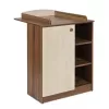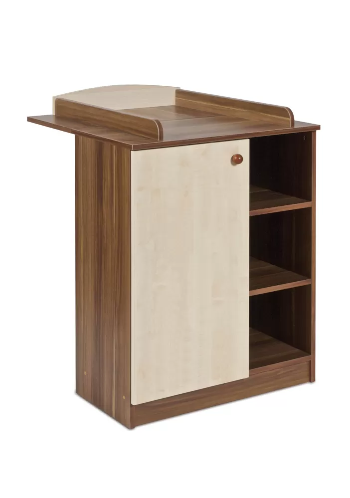 Komoda poskytuje dostatok priestoru na všetko potrebné, dvierka chránia pred prachom, otvorená časť je zase rýchlo prístupná pre frekventované potreby. Komoda je optimálne vysoká na pohodlné prebaľovanie. Horná plocha komody je v tejto zostave vybavená bezpečnostnými zarážkami na troch stranách. Tie zabraňujú posunutiu samostatne dokupovanej prebaľovacej podložky mimo komodu.
