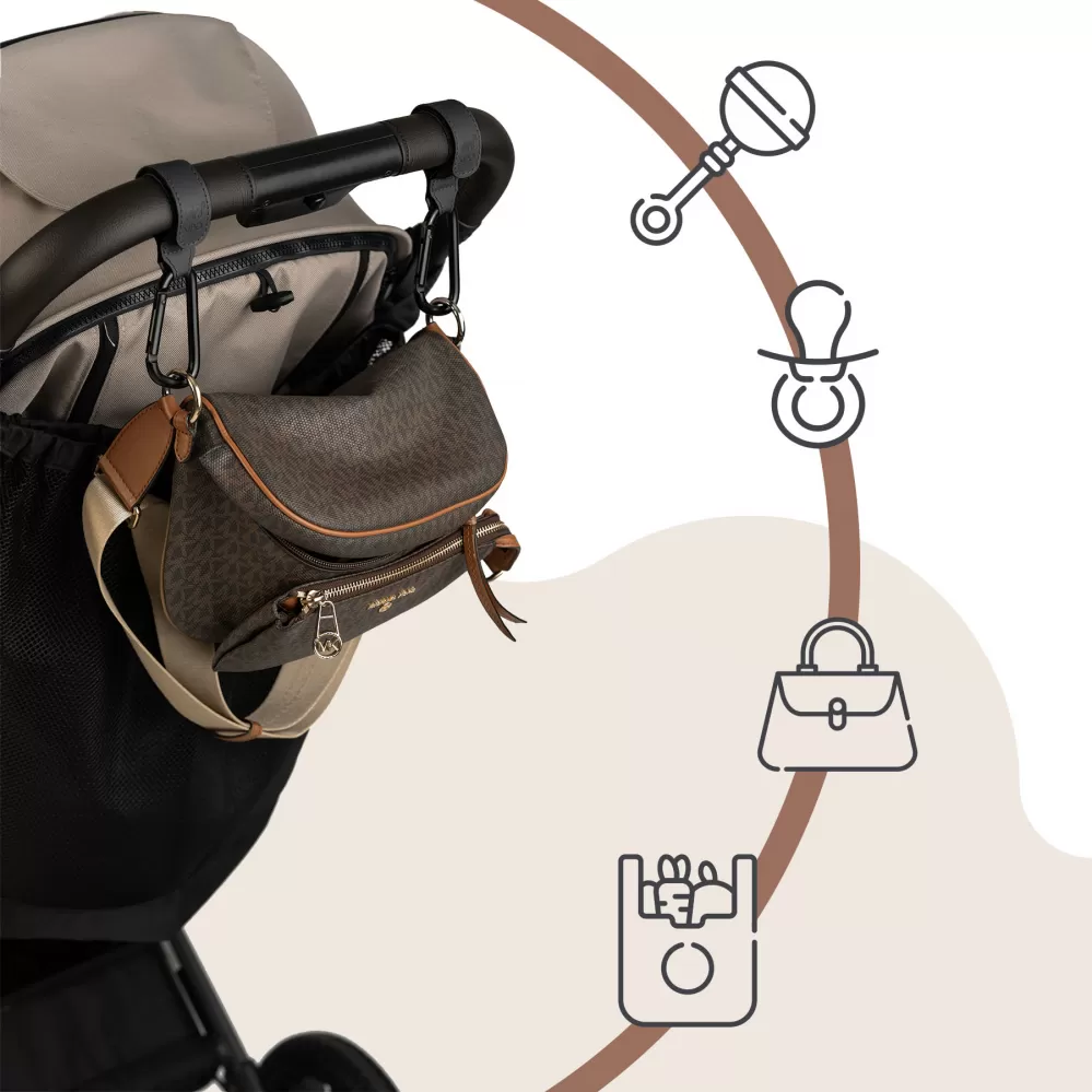 Háčky jsou navrženy s ohledem na pohodlí, snadno se připevňují a používají – dokonce i jen jednou rukou. Díky kompaktní velikosti se snadno vejdou do kabelky nebo přihrádky. Nejsou jen funkčním řešením pro rodiče, ale také stylovým doplňkem, který elegantně doplní vzhled vašeho kočárku.