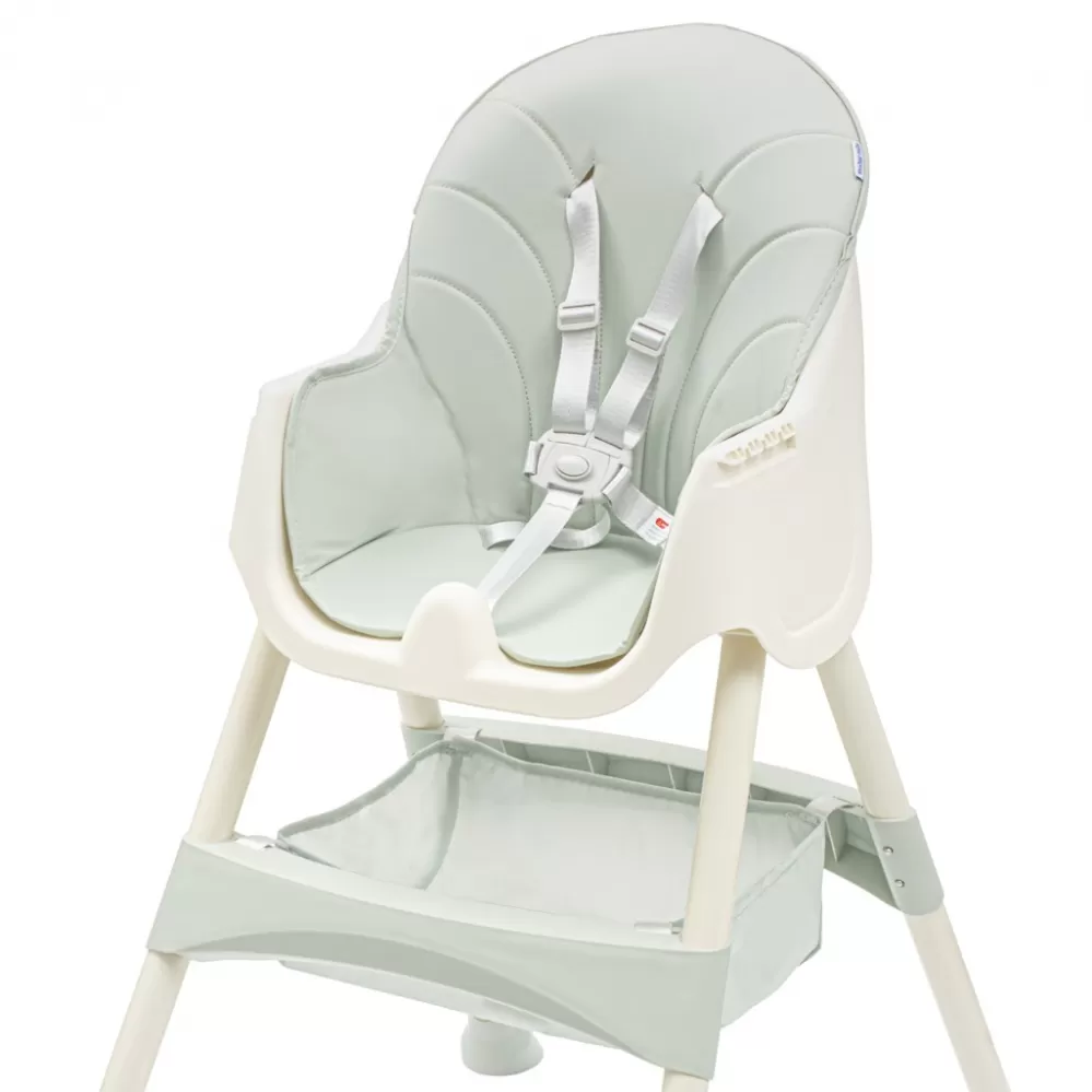 5-bodový pás zaistí Vášmu dieťaťu bezpečie a opierka na nohy pohodlia. Poťah je možné kedykoľvek vyčistiť vlhkou handričkou. Stoličku je možné ľahko premeniť na nízku stoličku odstránením spodnej časti nôh. Látkový kôš je dostatočne priestranný na uloženie potrebných vecí, ako sú vlhčené obrúsky, látková plienka či obľúbené drobné hračky. Protišmykové nôžky zabránia nechcenému posúvaniu stoličky. Jedálenskú stoličku Baby Mix môžete využiť aj ako detskú stoličku.