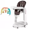 Tri produkty v jednom - pohodlná kolíska, polohovacie lehátko alebo detská stolička. Tatamia Follow Me je vybavená tzv. Stop & Go brzdovým systémom pre bezpečné a jednoduché presúvanie stoličky. Nastaviteľná opierka chrbta a nôh umožňuje ideálnu pozíciu aj pre novorodencov. Celá stolička je výškovo nastaviteľná a vďaka použitým materiálom je možné ju ľahko čistiť. Dvojitý pultík je vybavený držiakom nápojov, jeho vrchnú časť je možné umývať v umývačke riadu a je úplne odnímateľný. Spodná časť pultíka teraz disponuje dodatočnou zábranou, ktorá ešte viac zlepšuje úroveň bezpečnosti stoličky, o ktorú sa primárne stará predovšetkým 5-bodový bezpečnostný pás pre pripútanie dieťaťa.