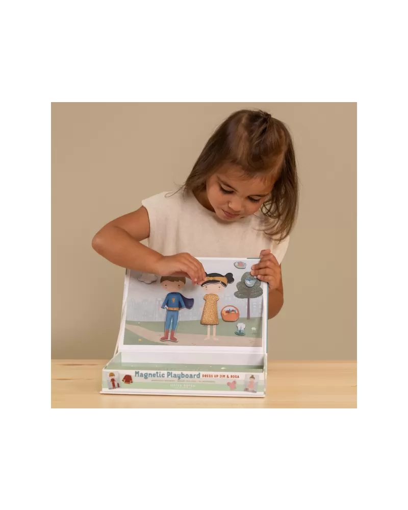 Oblečte sa s Jimom a Rosou! S touto magnetickou hrou môžete napodobniť oblečenie, ktoré je na karte, pomocou magnetických dielikov na doske. Alebo použite vlastnú predstavivosť. skvelá hra zabaví deti doma, ale aj na cestách.