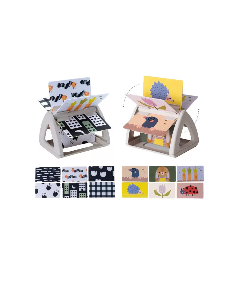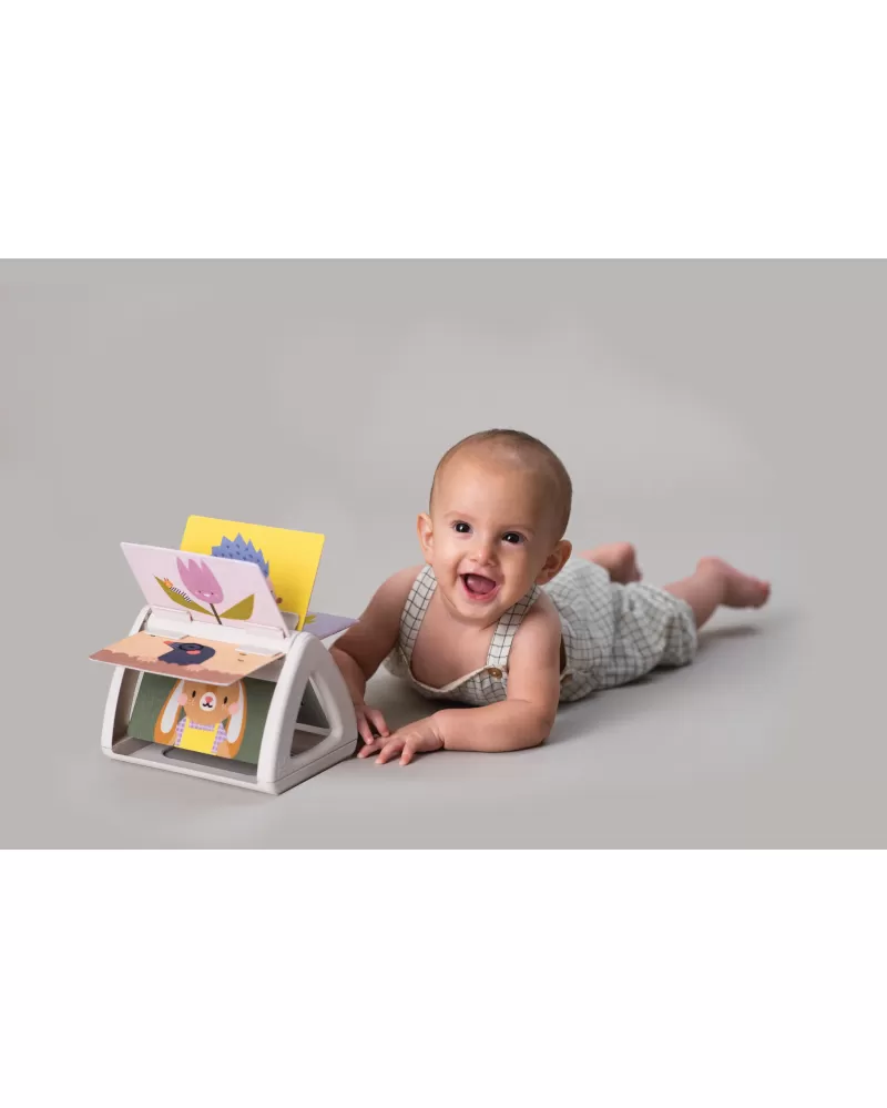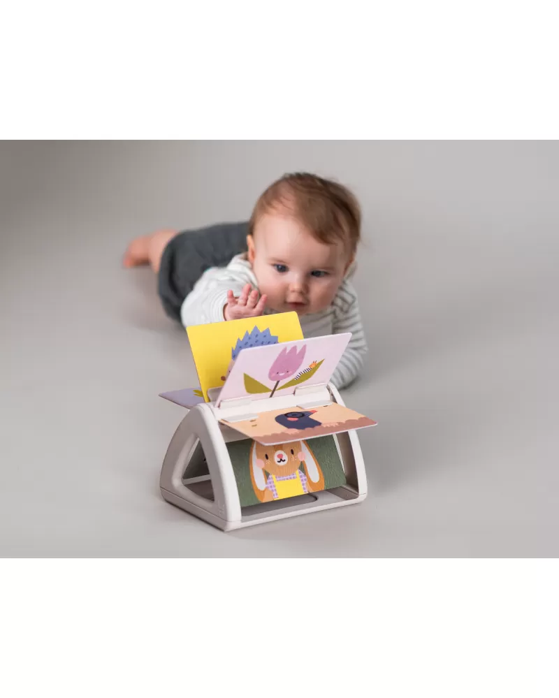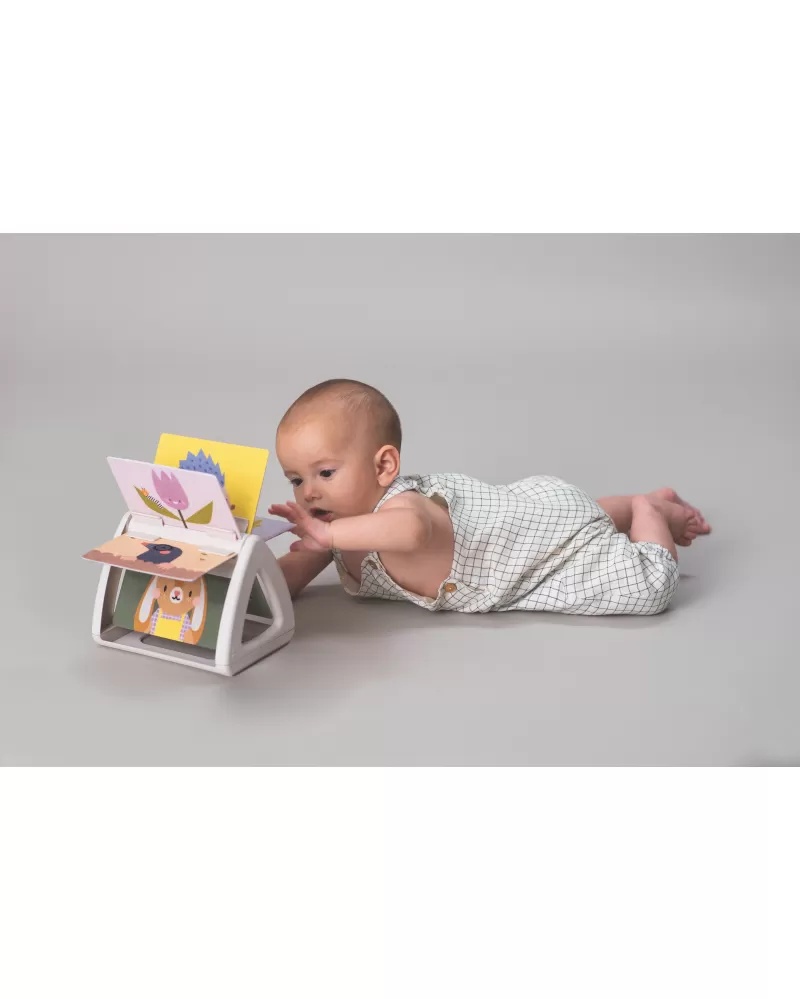 Pôvodná otočná kniha s krásnymi ilustráciami motívov zo života v záhrade ponúka rôzne typy obrázkov pre tri vývojové štádiá dieťaťa: