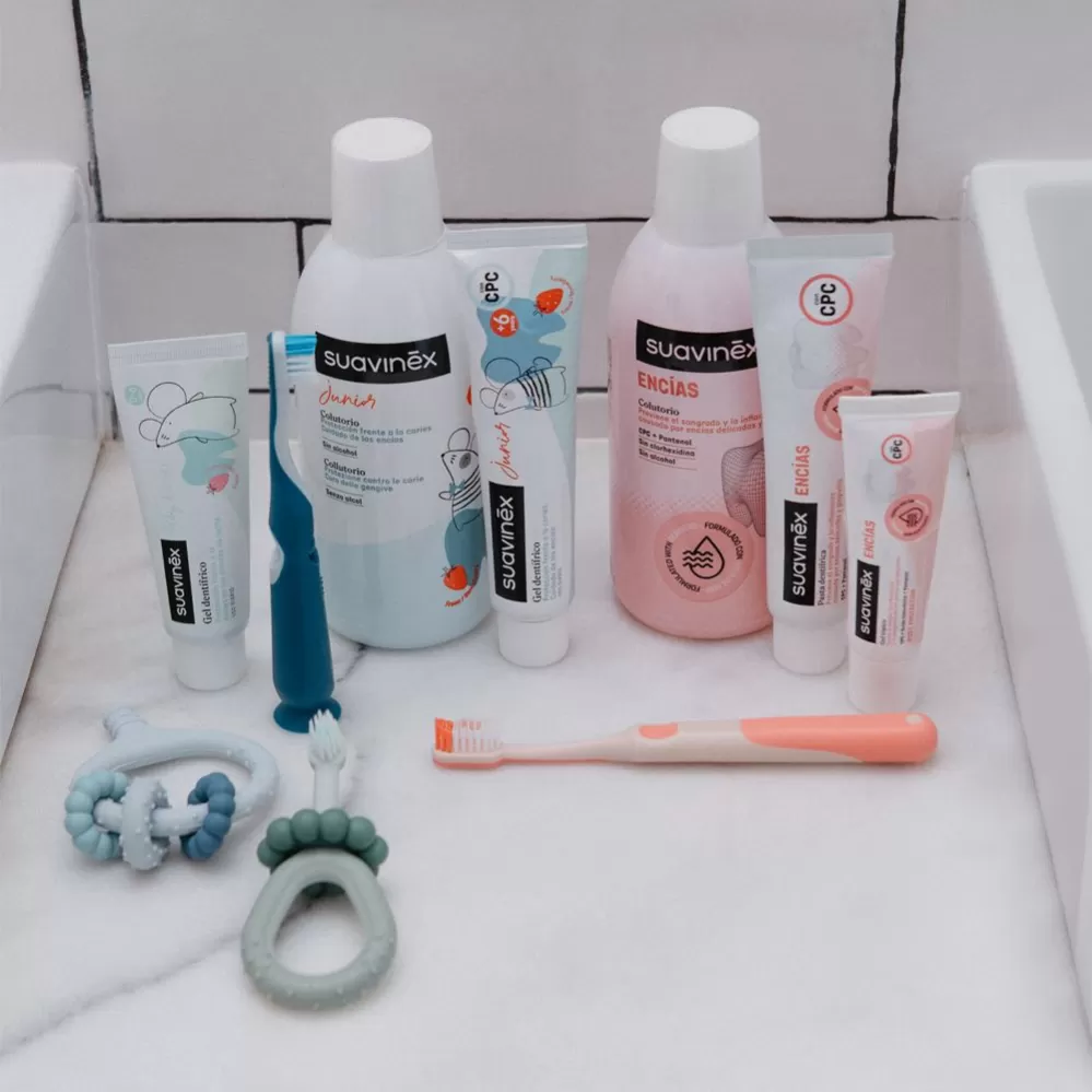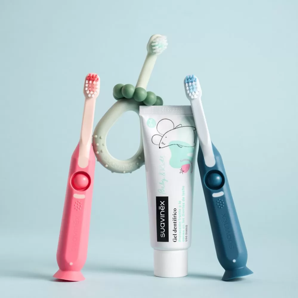 Suavinex zubní péče pro miminka a děti je navržena tak, aby poskytovala ochranu od prvního zoubku a podporovala zdravý vývoj. Je šetrná k dětským dásním i zubům.